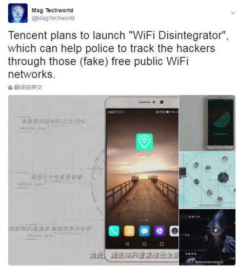 作为互联网巨头BAT之一的腾讯,就算突然发布什么神奇的产品,也不会让人太惊讶,连外媒也时刻关注着这个网络巨人。就在愚人节前夕,Facebook和推特上出现了一则小道消息,表示腾讯准备推出“风险WiFi粉碎机”。