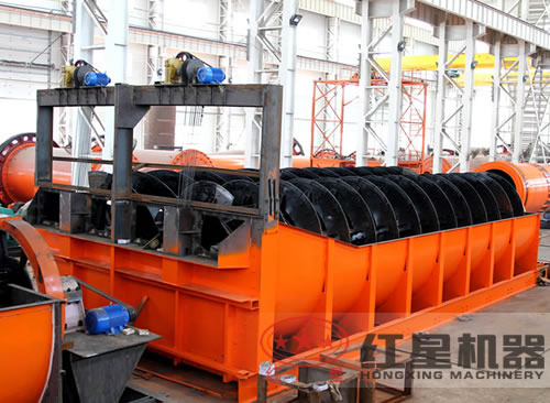 分级机主要有高堰式单螺旋分级机和双螺旋分级机、沉没式单螺旋分级机和双螺旋分级机四种分级机。适用于选矿厂中与球磨机配成闭路循环程分程分流矿沙,分级机或用在重力选矿厂中来分级矿砂和细泥,分级机也能用于金属选矿流程中对矿浆进行粒度分级,及分级机洗矿作业中的脱泥、脱水等作业。该分级机具有结构简单、工作可靠、操作方便等特点。